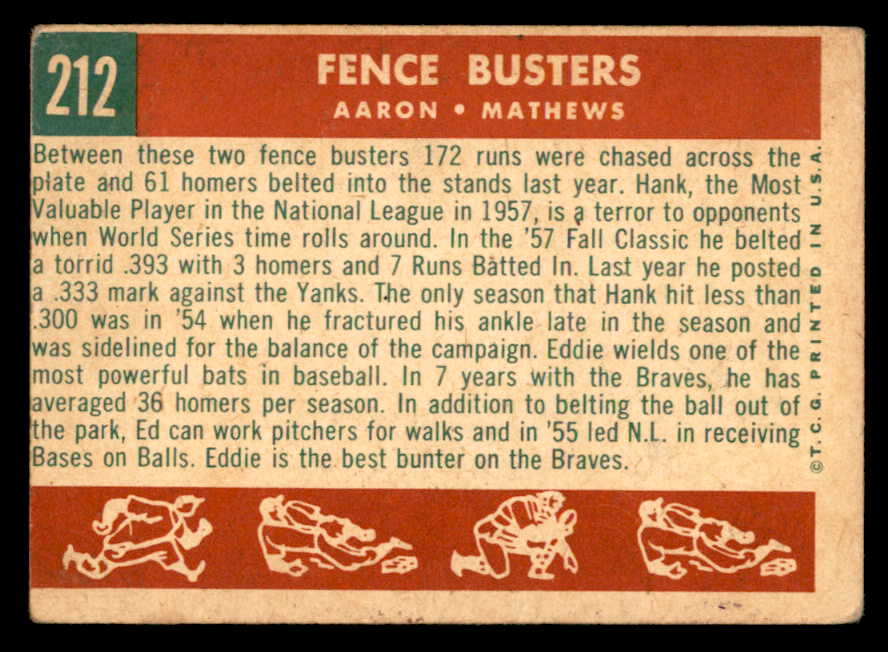 1959 Topps Baseball #212 Hank Aaron Eddie Mathews VG-EX 538816