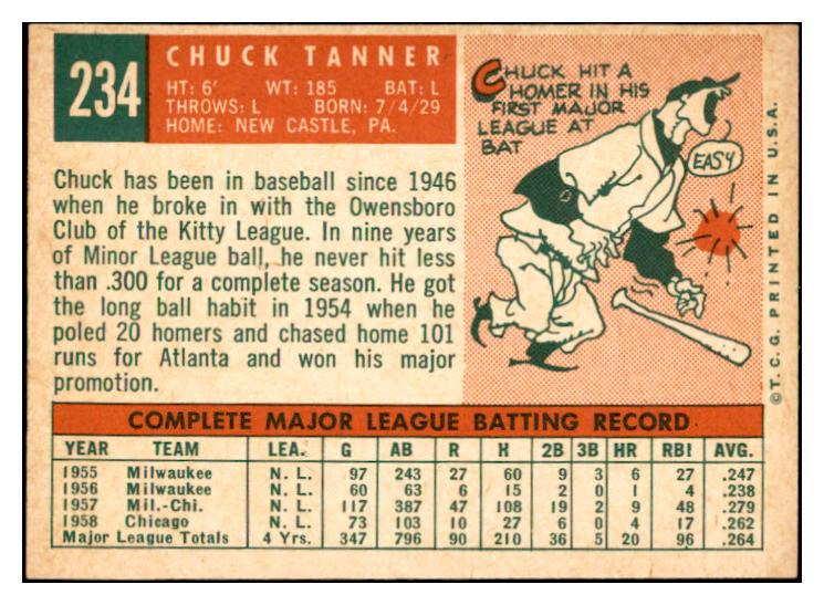1959 Topps Baseball #234 Chuck Tanner Cubs EX-MT 536171