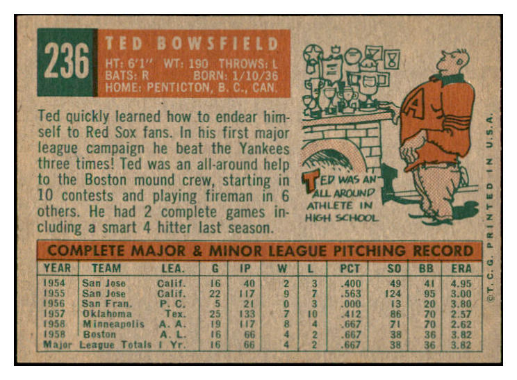 1959 Topps Baseball #236 Ted Bowsfield Red Sox EX-MT 536173