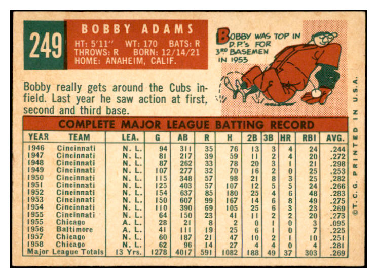 1959 Topps Baseball #249 Bobby Adams Cubs EX-MT 536178