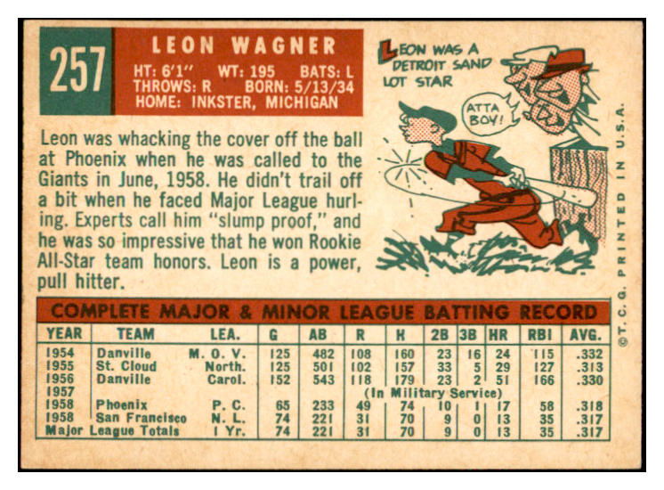 1959 Topps Baseball #257 Leon Wagner Giants EX-MT 536181