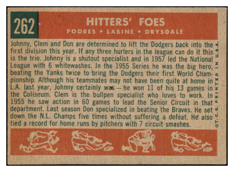1959 Topps Baseball #262 Don Drysdale Johnny Podres EX-MT 527267