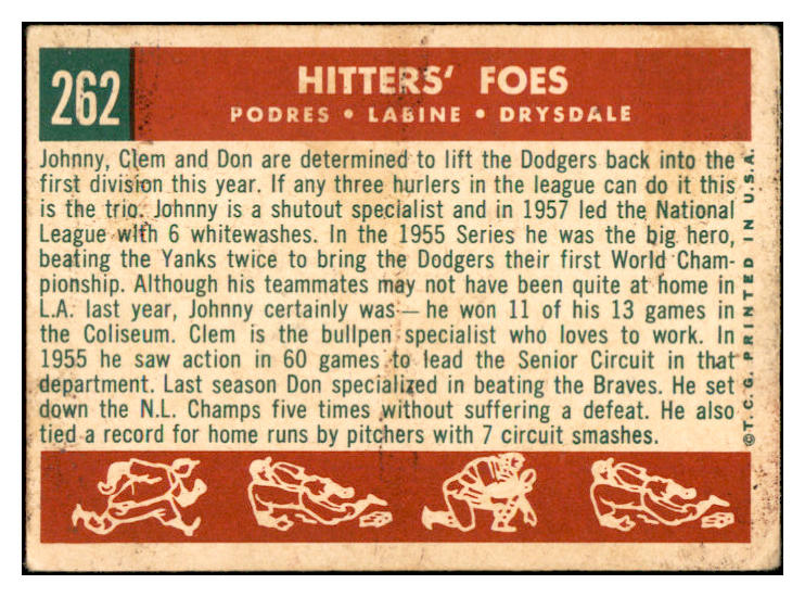 1959 Topps Baseball #262 Don Drysdale Johnny Podres VG 534473