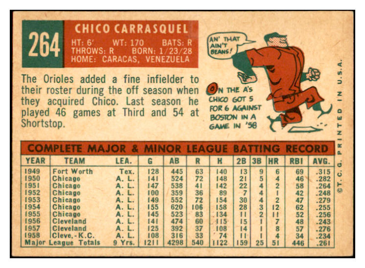 1959 Topps Baseball #264 Chico Carrasquel Orioles EX-MT 536185
