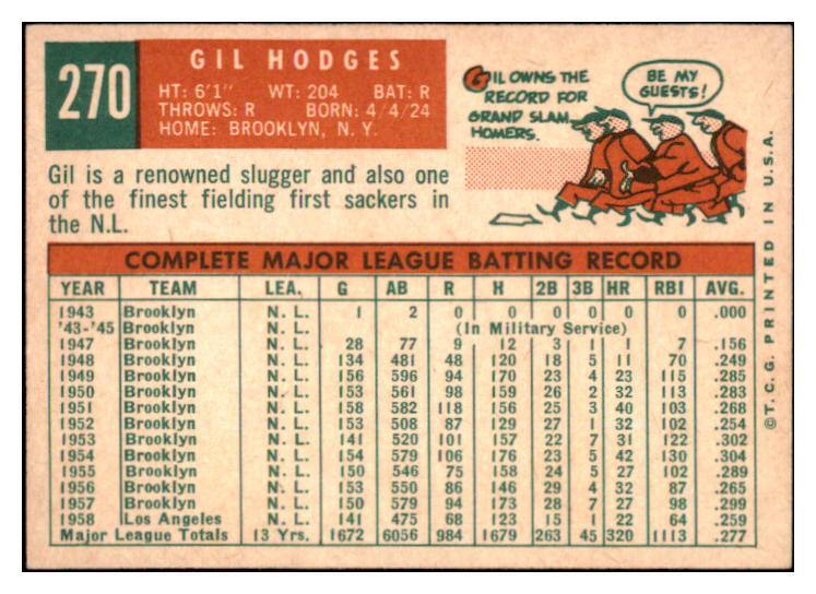 1959 Topps Baseball #270 Gil Hodges Dodgers EX-MT 525341