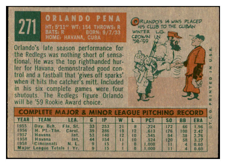 1959 Topps Baseball #271 Orlando Pena Reds EX-MT 536188