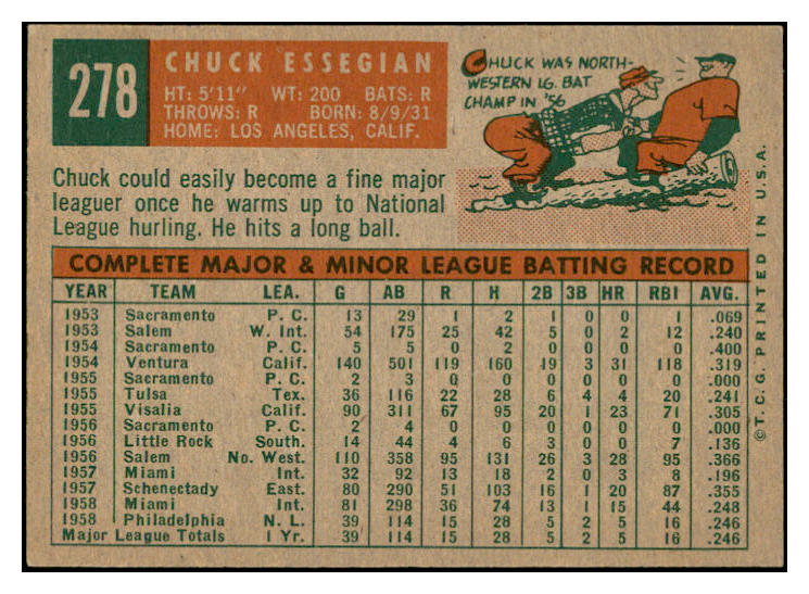 1959 Topps Baseball #278 Chuck Essegian Cardinals EX-MT 536190