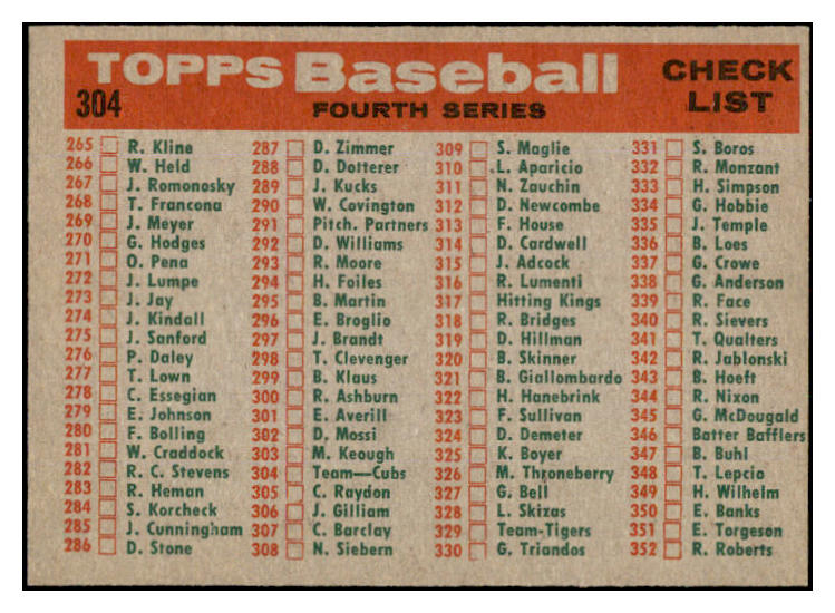 1959 Topps Baseball #304 Chicago Cubs Team EX-MT 524310