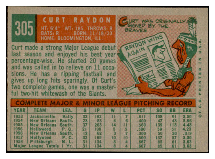 1959 Topps Baseball #305 Curt Raydon Pirates EX-MT 536204