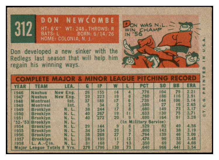 1959 Topps Baseball #312 Don Newcombe Reds EX-MT 524314