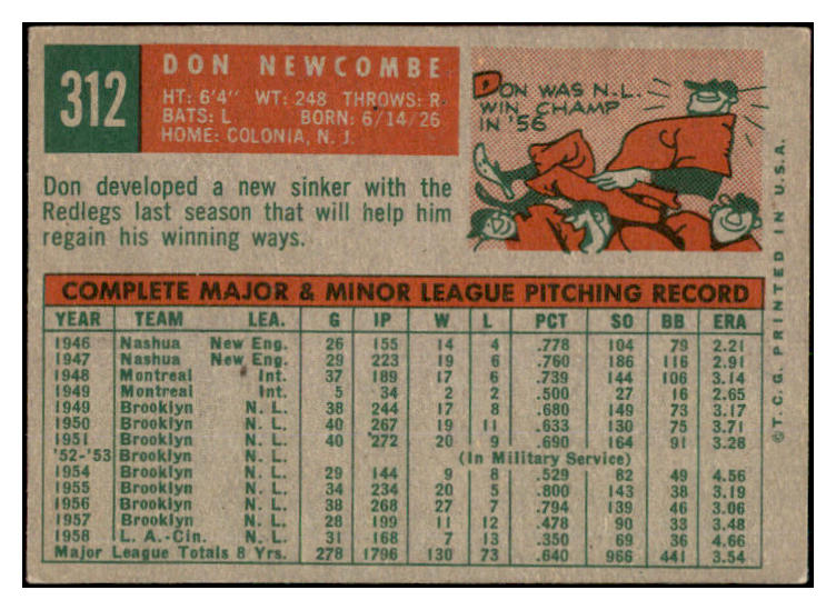1959 Topps Baseball #312 Don Newcombe Reds EX-MT 527248