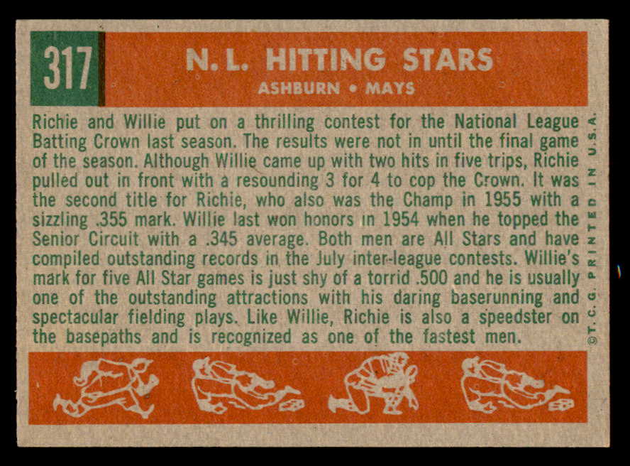 1959 Topps Baseball #317 Willie Mays Richie Ashburn EX+/EX-MT 538857