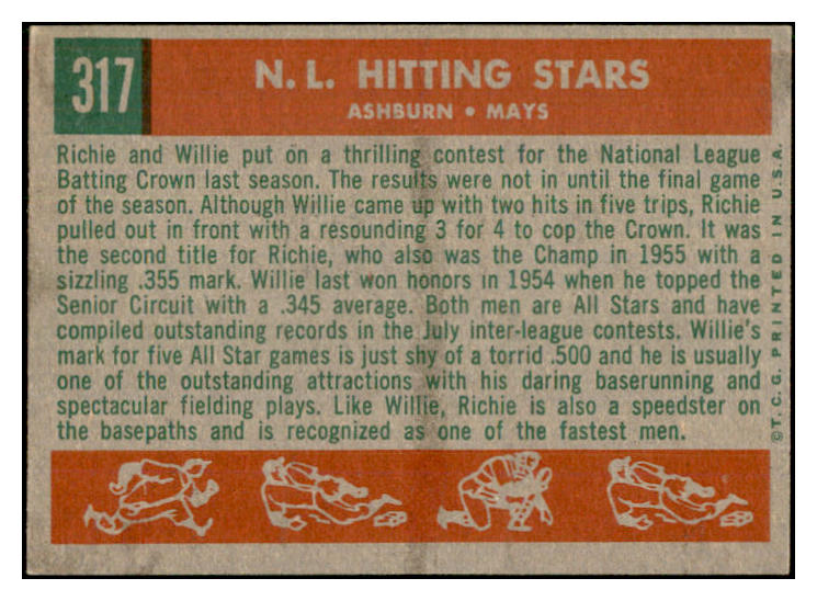 1959 Topps Baseball #317 Willie Mays Richie Ashburn EX-MT 534471