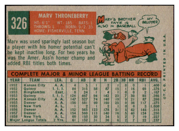 1959 Topps Baseball #326 Marv Throneberry Yankees EX-MT 525362