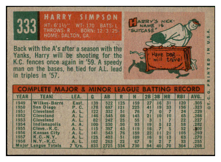 1959 Topps Baseball #333 Harry Simpson A's NR-MT 524075