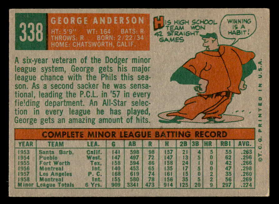 1959 Topps Baseball #338 Sparky Anderson Phillies EX 540183