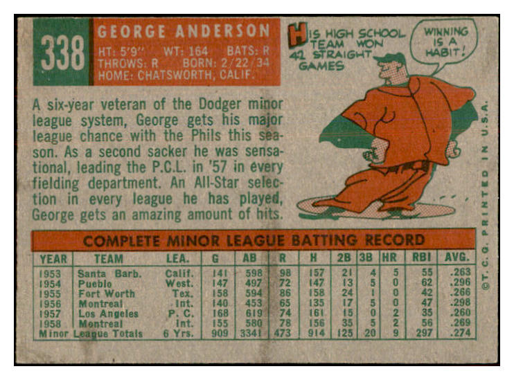 1959 Topps Baseball #338 Sparky Anderson Phillies EX-MT 534351