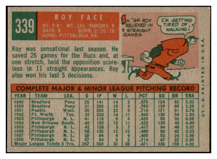 1959 Topps Baseball #339 Roy Face Pirates EX-MT 525332