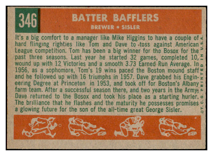 1959 Topps Baseball #346 Tom Brewer Dave Sisler EX-MT 536223