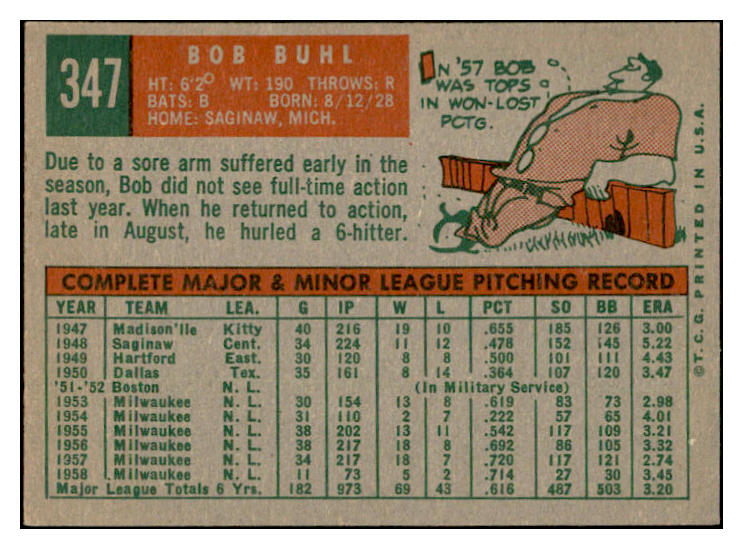 1959 Topps Baseball #347 Bob Buhl Braves EX-MT 536224