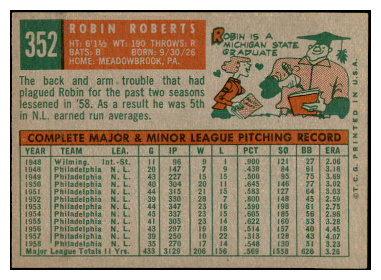 1959 Topps Baseball #352 Robin Roberts Phillies EX-MT 536382