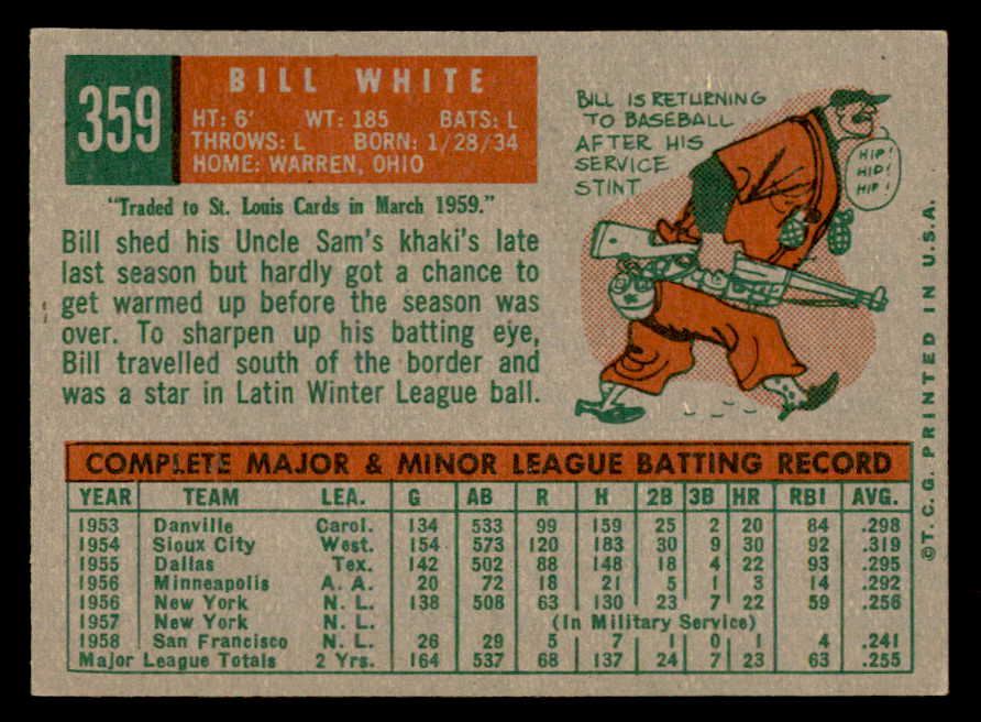 1959 Topps Baseball #359 Bill White Giants EX-MT 540191