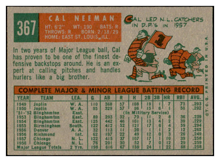 1959 Topps Baseball #367 Cal Neeman Cubs EX-MT 536231