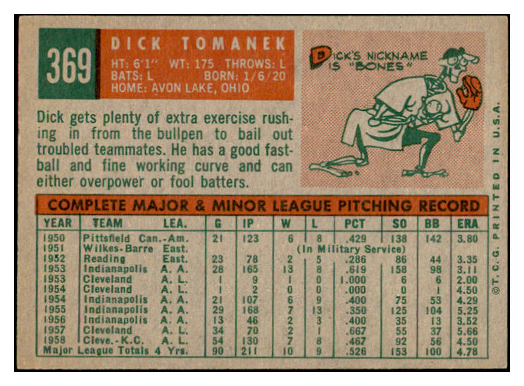 1959 Topps Baseball #369 Dick Tomanek A's EX-MT 536233