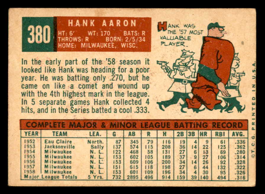 1959 Topps Baseball #380 Hank Aaron Braves VG 540193