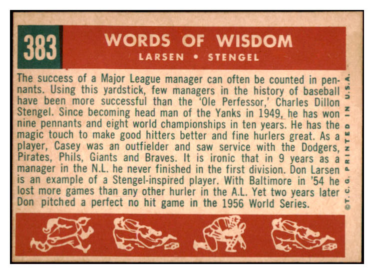 1959 Topps Baseball #383 Casey Stengel Don Larsen EX-MT 525370