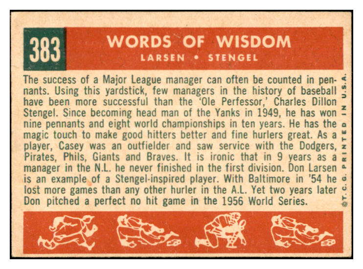 1959 Topps Baseball #383 Casey Stengel Don Larsen EX-MT 534437