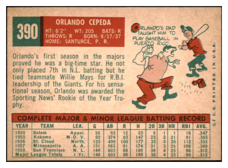 1959 Topps Baseball #390 Orlando Cepeda Giants EX-MT 525328