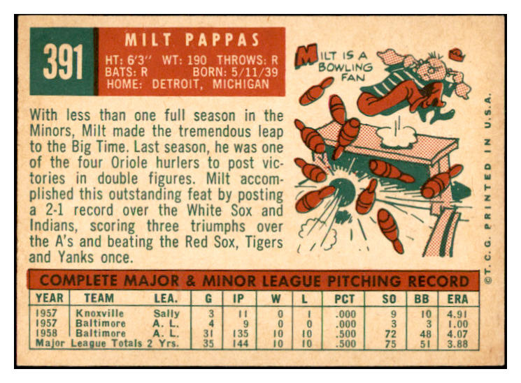 1959 Topps Baseball #391 Milt Pappas Orioles EX-MT 536242