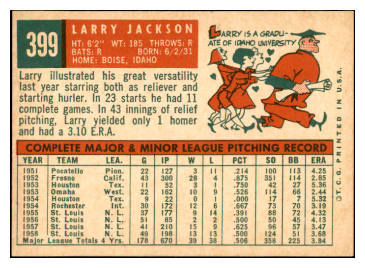 1959 Topps Baseball #399 Larry Jackson Cardinals EX-MT 536246