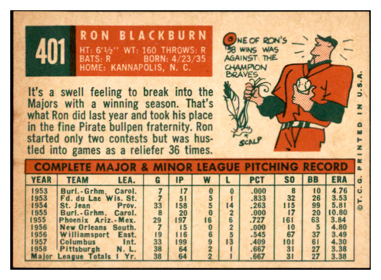1959 Topps Baseball #401 Ron Blackburn Pirates EX-MT 536247