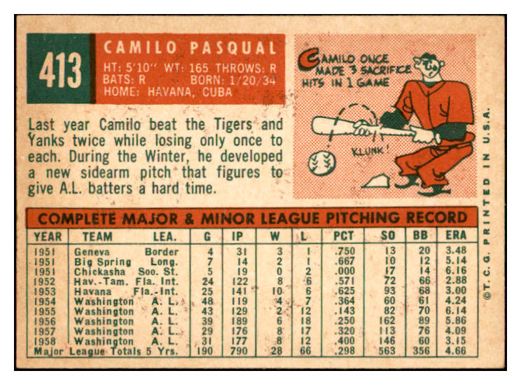 1959 Topps Baseball #413 Camilo Pascual Senators EX-MT 536254