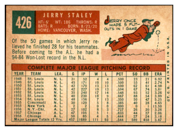 1959 Topps Baseball #426 Jerry Staley White Sox EX-MT 536261