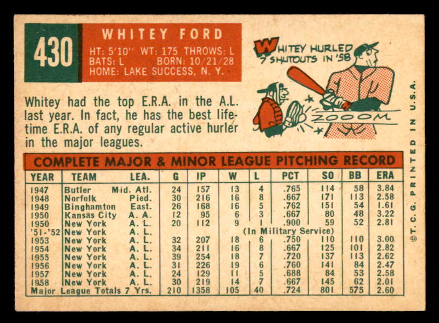 1959 Topps Baseball #430 Whitey Ford Yankees EX-MT 538851