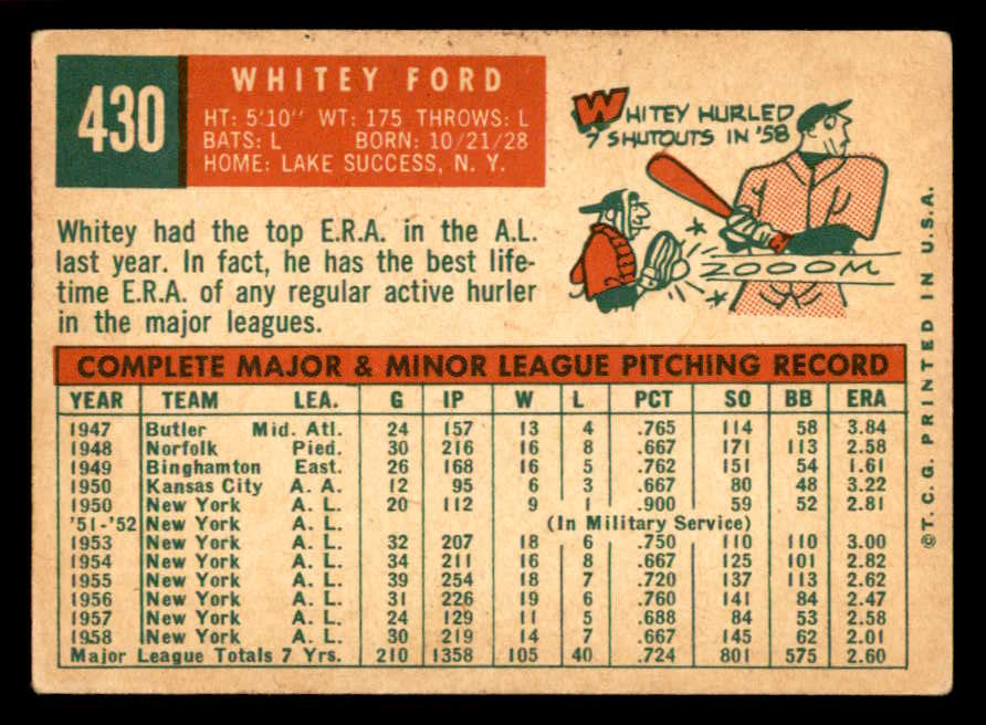 1959 Topps Baseball #430 Whitey Ford Yankees VG-EX 538795