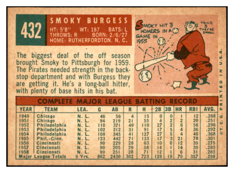 1959 Topps Baseball #432 Smoky Burgess Pirates EX-MT 536264