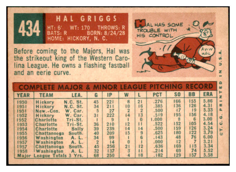 1959 Topps Baseball #434 Hal Griggs Senators NR-MT 524126