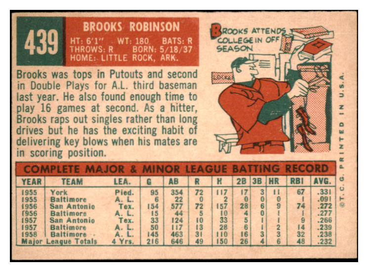 1959 Topps Baseball #439 Brooks Robinson Orioles EX-MT 522541