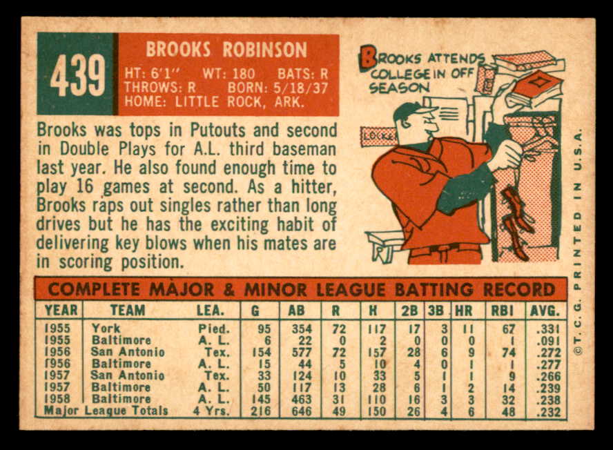 1959 Topps Baseball #439 Brooks Robinson Orioles EX-MT 538794