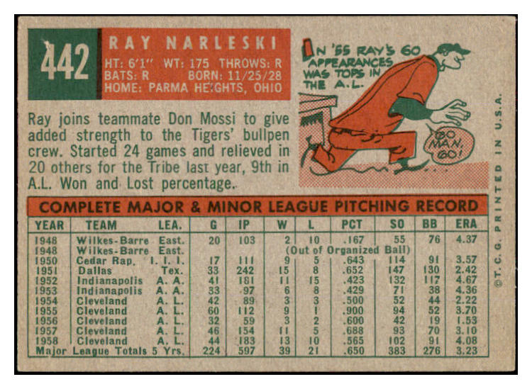 1959 Topps Baseball #442 Ray Narleski Tigers EX-MT 524260