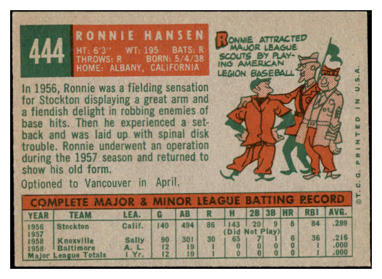 1959 Topps Baseball #444 Ronnie Hansen Orioles NR-MT 524131
