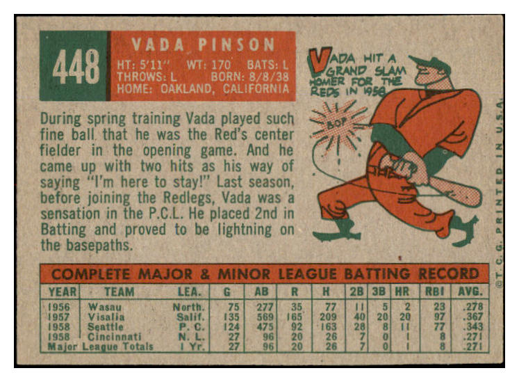 1959 Topps Baseball #448 Vada Pinson Reds EX-MT 524332
