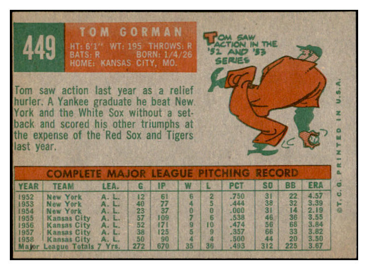 1959 Topps Baseball #449 Tom Gorman A's EX-MT 536270