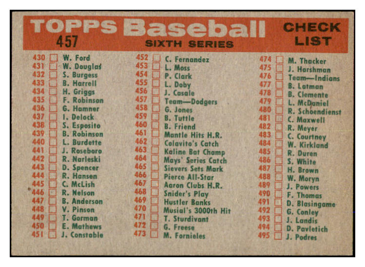 1959 Topps Baseball #457 Los Angeles Dodgers Team VG-EX 527503
