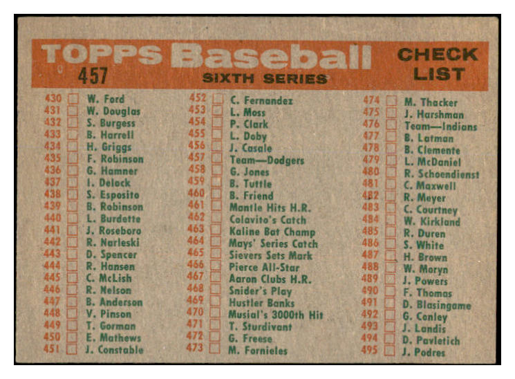 1959 Topps Baseball #457 Los Angeles Dodgers Team VG-EX 536381