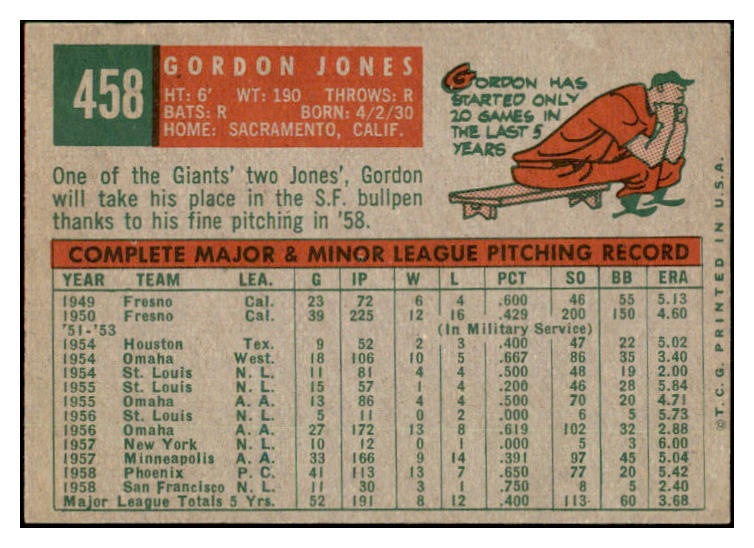 1959 Topps Baseball #458 Gordon Jones Giants NR-MT 524140